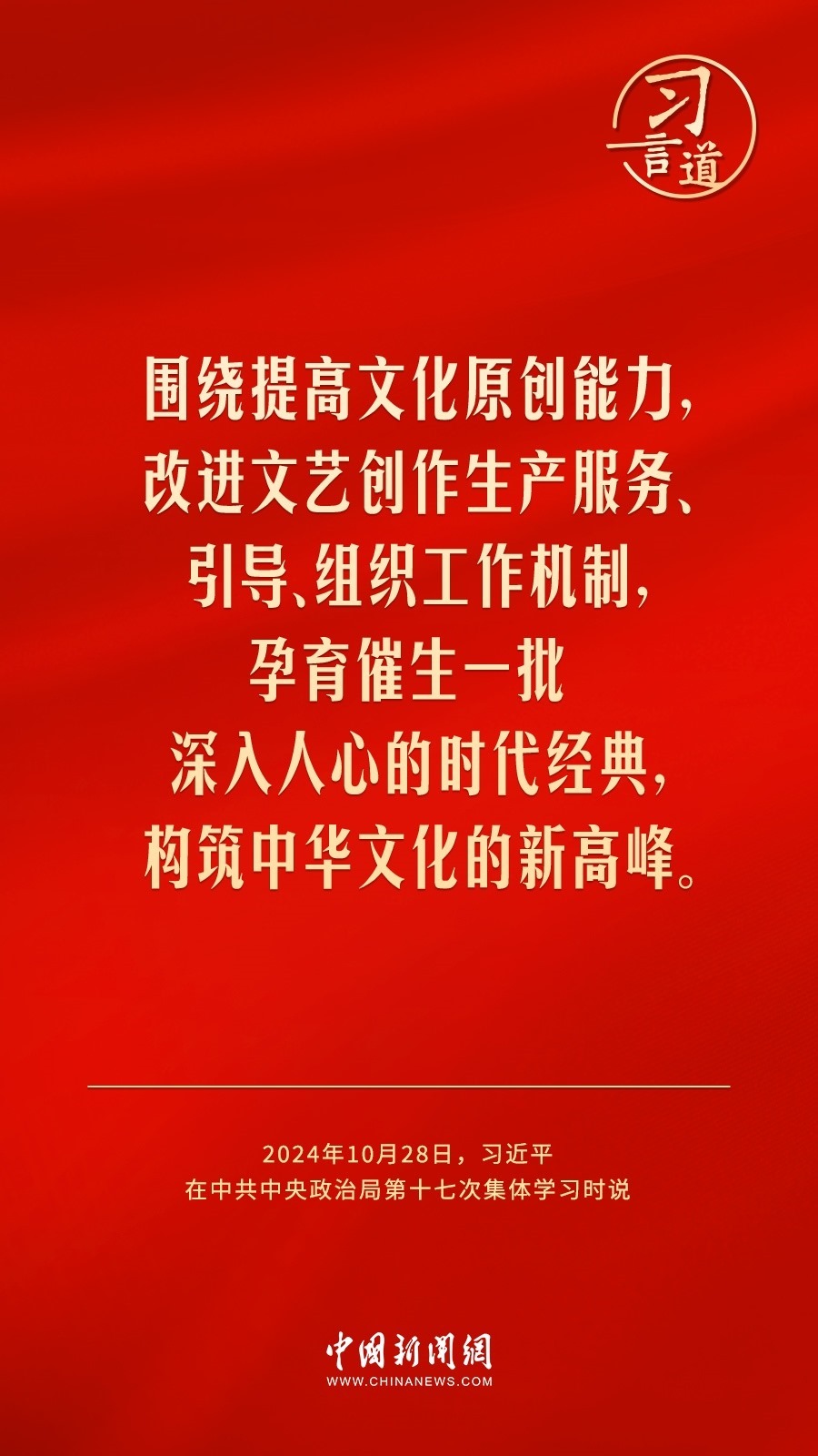 中共中央政治局10月28日下午就建設文化強國進行第十七次集體學習。中共中央總書記習近平在主持學習時強調——