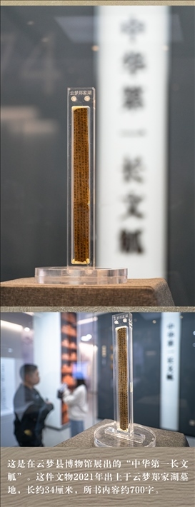 云夢(mèng)縣博物館現(xiàn)藏文物5000余件,其中國家一級(jí)文物49件。代表藏品有秦漢簡(jiǎn)牘、漆器、中華第一長(zhǎng)文觚等,地域特色鮮明。2024年8月,該博物館被認(rèn)定為國家二級(jí)博物館。