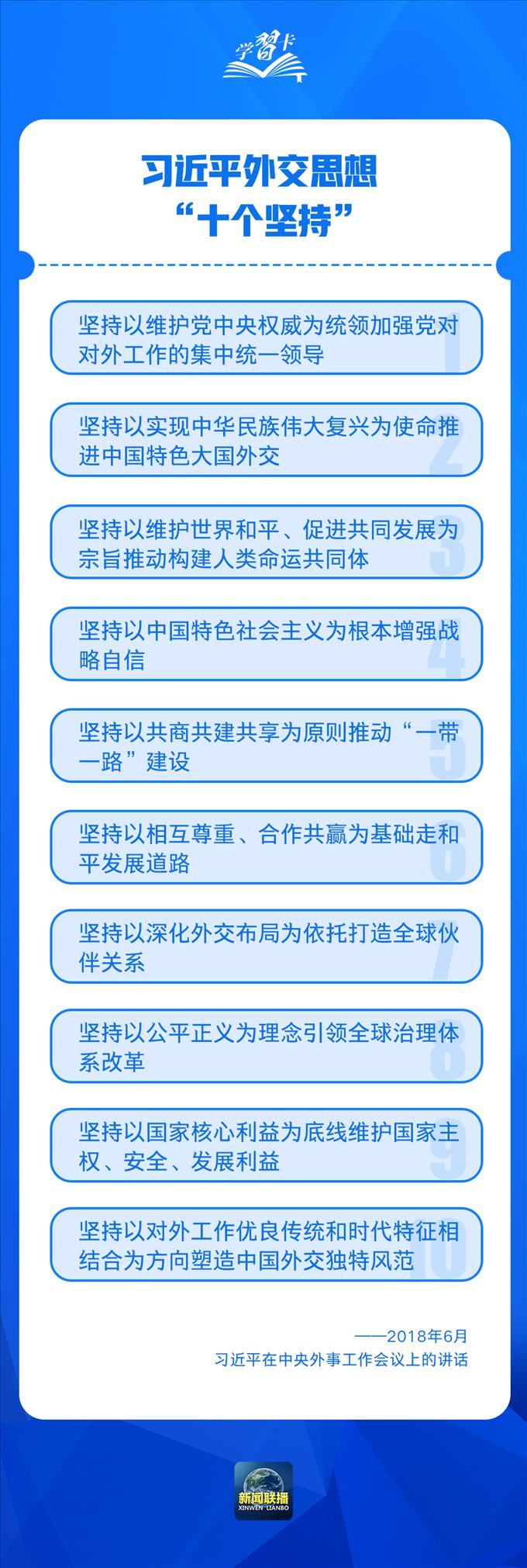 2018年6月召開的中央外事工作會議上,總書記進(jìn)一步強(qiáng)調(diào),堅(jiān)持以實(shí)現(xiàn)中華民族偉大復(fù)興為使命推進(jìn)中國特色大國外交,會議確立了習(xí)近平外交思想的指導(dǎo)地位。