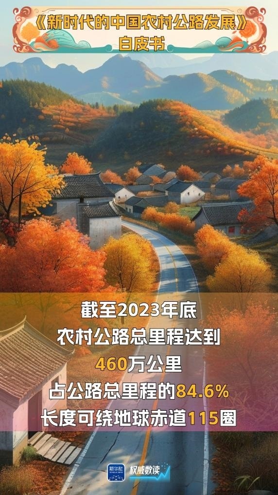 國務(wù)院新聞辦公室29日發(fā)布的《新時(shí)代的中國農(nóng)村公路發(fā)展》白皮書顯示,截至2023年底,我國農(nóng)村公路總里程增長到460萬公里,占公路總里程的84.6%,目前已形成了“外通內(nèi)聯(lián)、通村暢鄉(xiāng)、客車到村、安全便捷”的農(nóng)村交通運(yùn)輸網(wǎng)絡(luò),帶動農(nóng)村地區(qū)整體面貌發(fā)生了巨大變化。