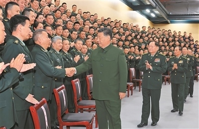 十二月四日,中共中央總書記、國家主席、中央軍委主席習(xí)近平視察信息支援部隊(duì),代表黨中央和中央軍委,對信息支援部隊(duì)第一次黨代表大會(huì)的召開表示熱烈祝賀,向信息支援部隊(duì)全體官兵致以誠摯問候。這是習(xí)近平同代表們親切握手。新華社記者 李 剛攝