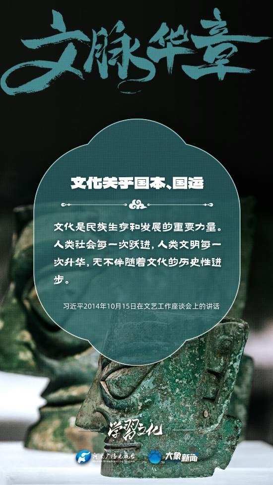 習(xí)近平總書記高度重視文化之于國家、之于民族的重大意義,強(qiáng)調(diào):文化是一個(gè)國家、一個(gè)民族的靈魂。文化興國運(yùn)興,文化強(qiáng)民族強(qiáng)。沒有高度的文化自信,沒有文化的繁榮興盛,就沒有中華民族偉大復(fù)興。大象新聞梳理了習(xí)近平總書記的系列重要論述,我們一起學(xué)習(xí)。