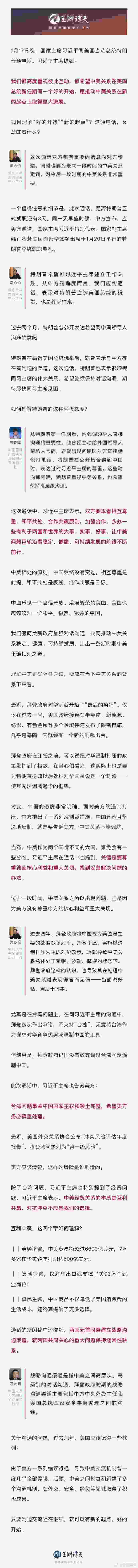 1月17日晚,中美元首通電話。一個(gè)值得注意的細(xì)節(jié)是,此次通話,距離特朗普正式就職還有3天。這通電話,意味著什么?來(lái)看譚主的獨(dú)家解讀。