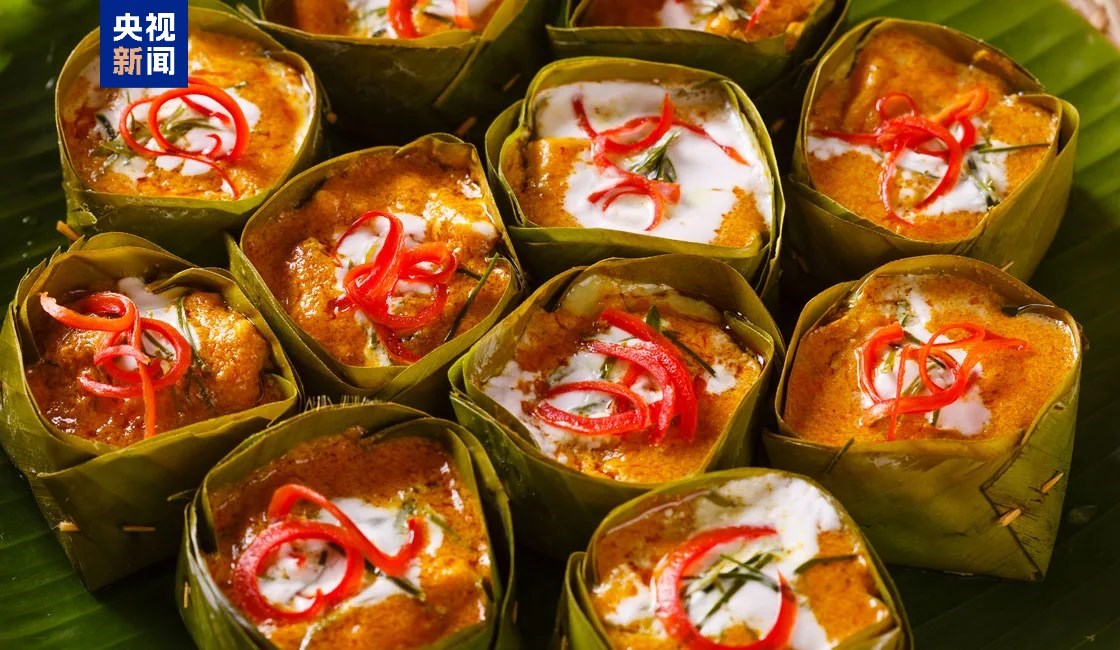 國菜阿莫克魚(Amok)用椰奶咖喱蒸魚,再用香蕉葉包裹,香氣四溢。