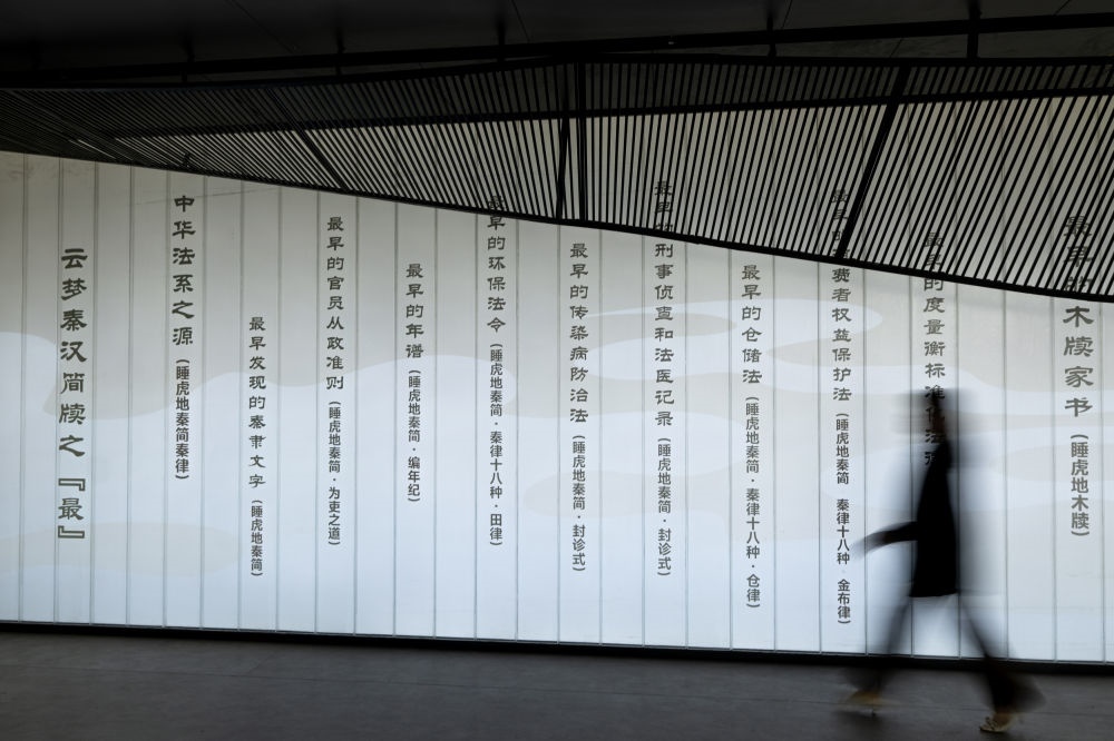 2024年4月15日,觀眾在湖北云夢(mèng)縣博物館睡虎地秦簡(jiǎn)展廳參觀。睡虎地秦簡(jiǎn)被發(fā)現(xiàn)于1975年,是中國(guó)考古史上首次發(fā)現(xiàn)的秦簡(jiǎn)。