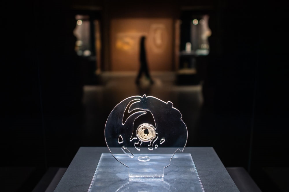 在武漢盤龍城遺址博物院拍攝的玉團(tuán)鳳(2024年3月30日攝)。1955年,玉團(tuán)鳳于湖北天門石家河遺址出土,造型秀美,線條遒勁流暢,被譽(yù)為“中華第一鳳”。石家河遺址距今約5000年,是長(zhǎng)江中游同期規(guī)模最大的聚落。