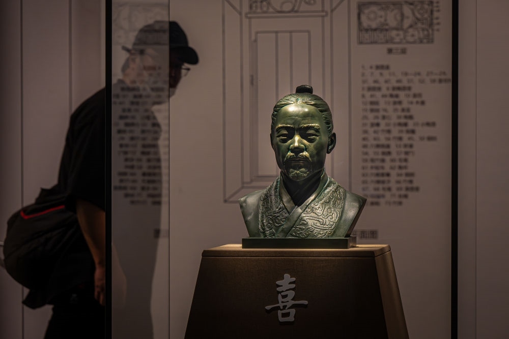 2024年4月30日,游客在湖北省博物館觀看云夢(mèng)睡虎地秦簡(jiǎn)主人“喜”的3D復(fù)原頭像。 當(dāng)日,湖北省博物館策劃的專題展覽“惠此簡(jiǎn)書——睡虎地秦墓出土簡(jiǎn)牘”開幕,首次展出科技考古研究成果——“喜”的3D復(fù)原頭像。