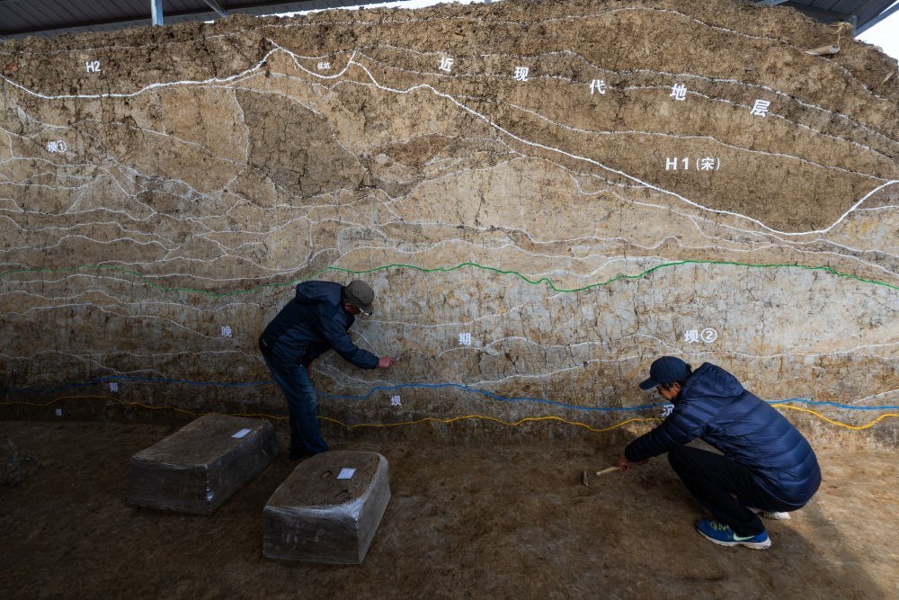 2023年12月4日,考古人員在湖北荊門屈家?guī)X遺址熊家?guī)X水壩現(xiàn)場(chǎng)工作。屈家?guī)X遺址是屈家?guī)X文化的發(fā)現(xiàn)地和命名地,地處大洪山南麓向江漢平原的過渡地帶,是實(shí)證長(zhǎng)江中游文明起源的重要大遺址。