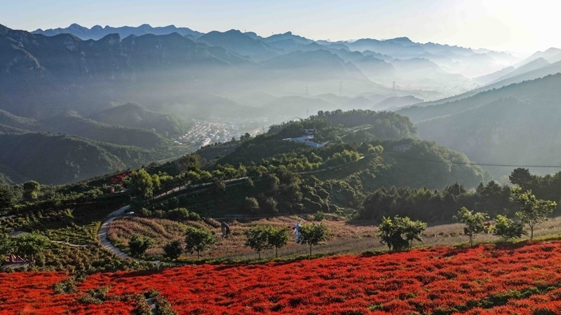 9月7日在河北省承德市興隆縣南天麗景風(fēng)景區(qū)拍攝的秋日晨景(無人機(jī)照片)。