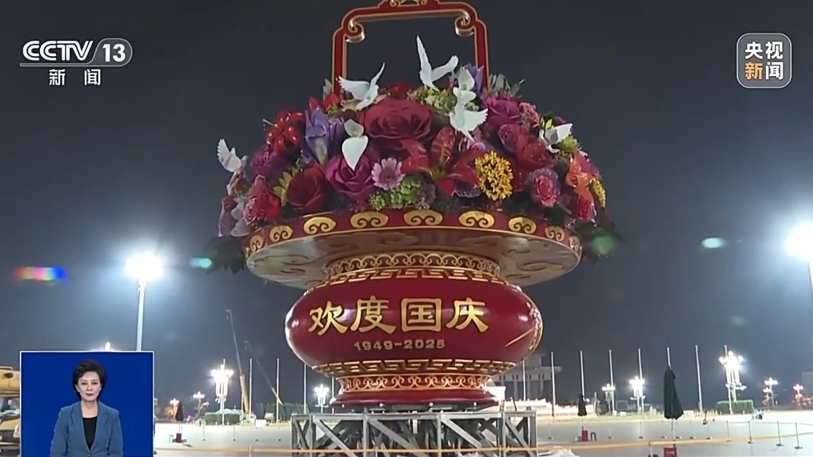 22日凌晨,天安門廣場(chǎng)中心的“祝福祖國(guó)”巨型花籃吊裝完成,籃盤與籃肚精準(zhǔn)合龍。巨型花籃是如何組裝的?今年的花籃有哪些新亮點(diǎn)?