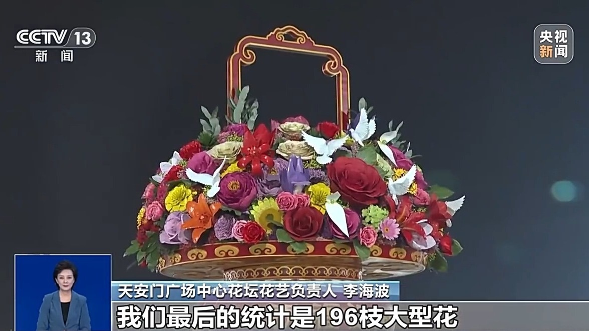 總臺(tái)記者 魏雨彤:今年的“祝福祖國(guó)”花籃籃體高16米,籃內(nèi)選取了18種美好寓意的花卉,比如說(shuō)月季,首次作為焦點(diǎn)花寓意和平希望,向日葵寓意自由幸福。值得一提的是,今年還首次將靈動(dòng)的動(dòng)物元素融入其中,10只和平鴿正以三種不同的姿態(tài)翱翔于花籃之上,成為今年的新亮點(diǎn)。