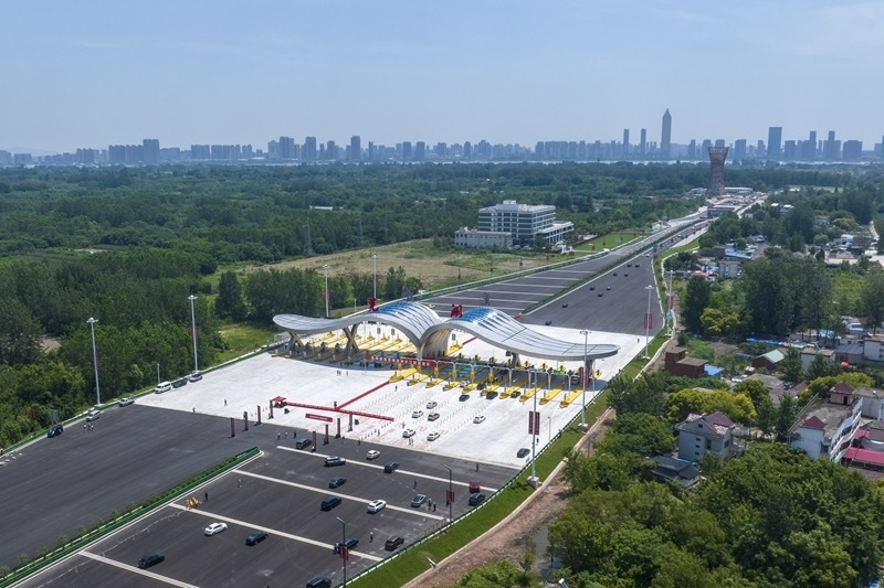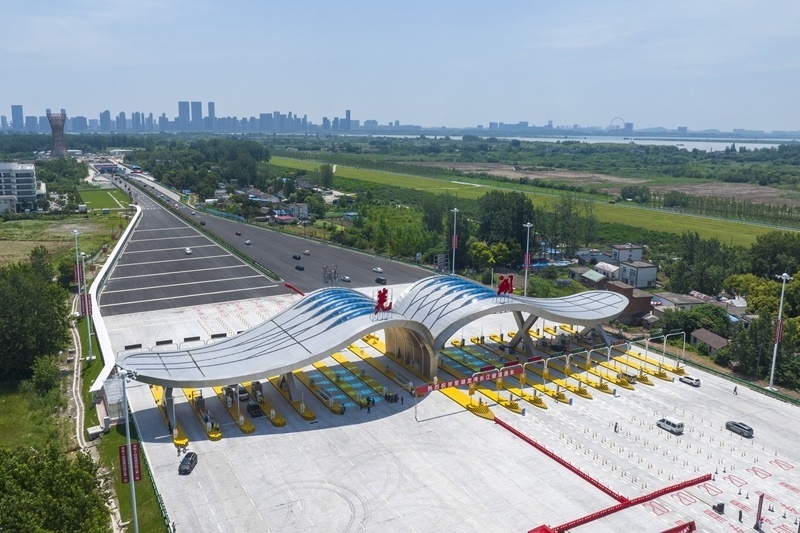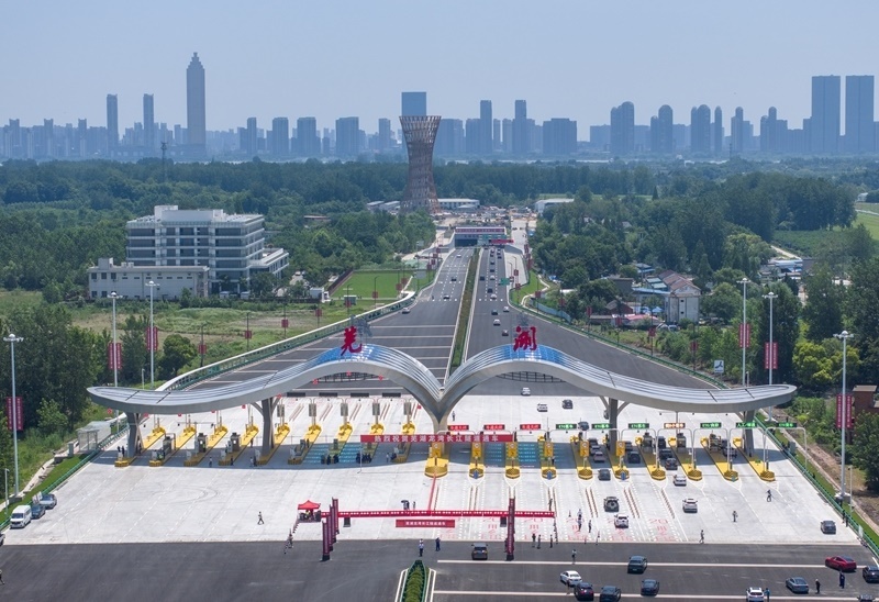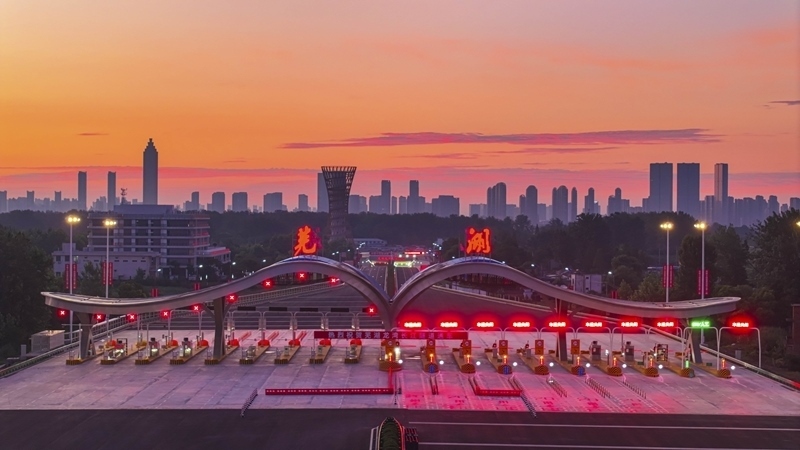 7月1日,車輛通過蕪湖龍灣長(zhǎng)江隧道收費(fèi)站(無人機(jī)照片)。