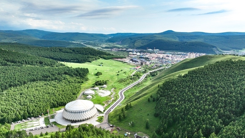 7月4日拍攝的內(nèi)蒙古興安盟阿爾山市一角(無人機(jī)照片)。