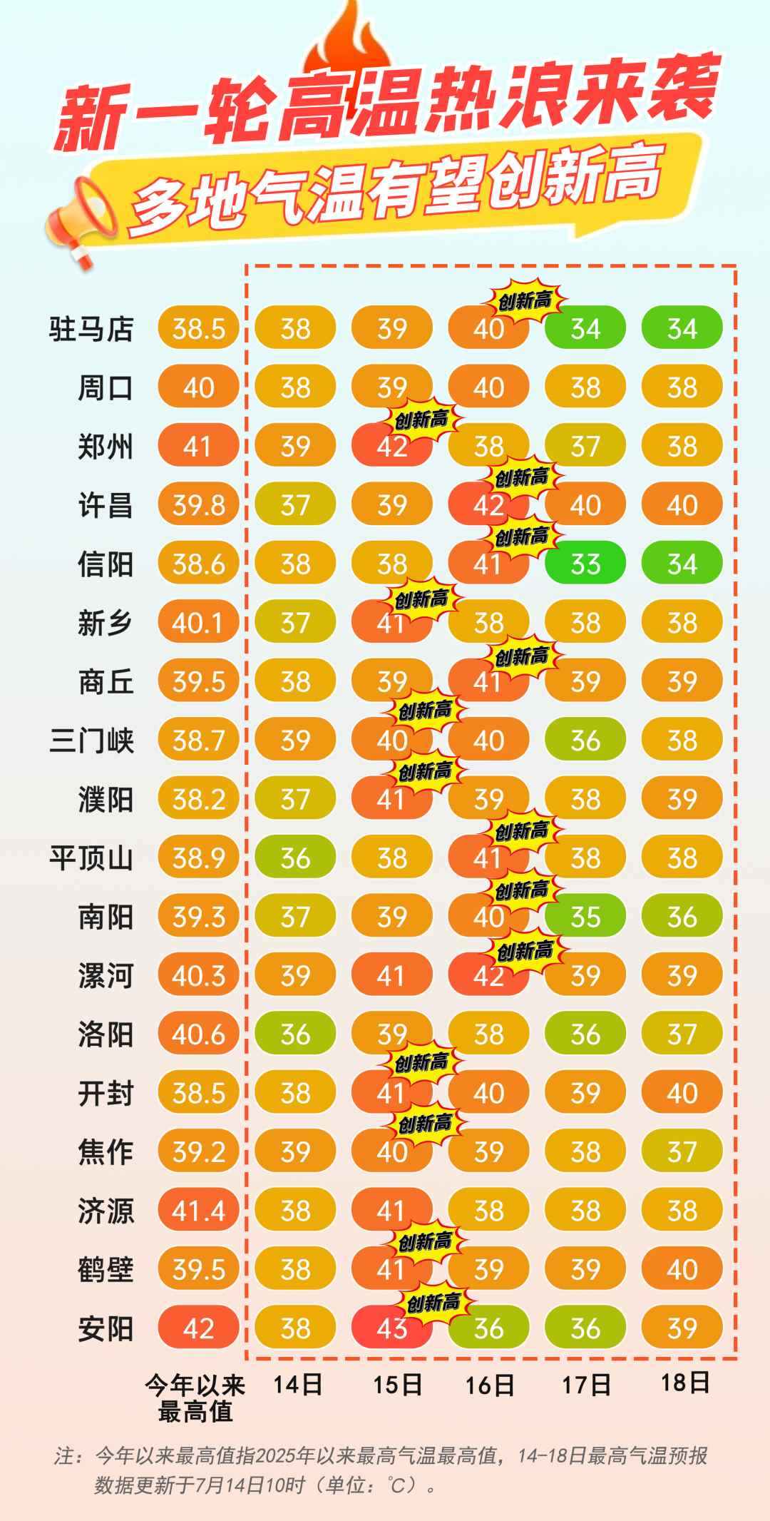 正如預(yù)報(bào)所示,昨日(7月14日),我省大范圍地區(qū)經(jīng)歷了酷熱天氣,鄭州、新鄉(xiāng)、焦作等地氣溫紛紛突破40℃大關(guān),河南省氣象臺(tái)也于當(dāng)日中午12時(shí)果斷將預(yù)警升級(jí)為紅色。