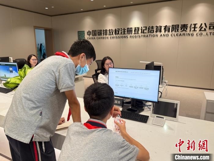 圖為開放日當(dāng)天學(xué)生模擬買賣碳配額。 王夢媛 攝