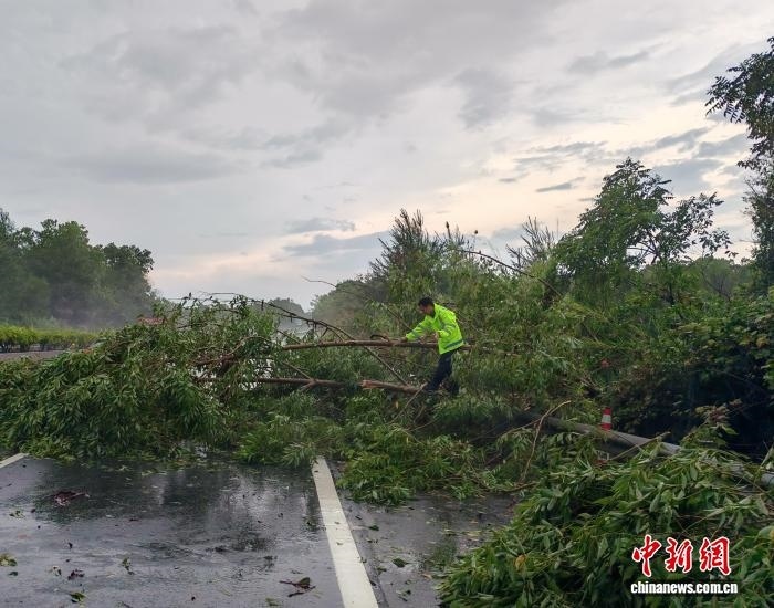 21日,云梧高速路政員清理被臺(tái)風(fēng)吹倒的樹(shù)木。劉朦 攝