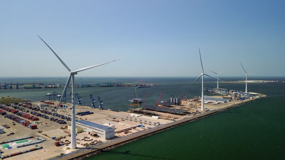 “4臺風(fēng)力發(fā)電機一年可發(fā)電約7000萬千瓦時,足以覆蓋碼頭設(shè)備及??看暗挠秒娦枨螅哂嚯娏窟€能上網(wǎng)銷售?!鄙綎|省港口集團濰坊港有限公司黨支部書記、總經(jīng)理孫超說,濰坊港已形成風(fēng)、光、氫“多能互補”的用能結(jié)構(gòu),每年可節(jié)省標(biāo)煤2.1萬噸,減少二氧化碳排放5.7萬噸。