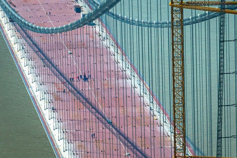 據(jù)了解,新港高速公路武漢雙柳長(zhǎng)江大橋及接線工程是國(guó)家高速路網(wǎng)武漢都市圈環(huán)線重要組成部分,路線全長(zhǎng)35.043公里,其中跨江主橋主跨1430米、寬50.5米,設(shè)計(jì)時(shí)速120公里,采用雙向8車道設(shè)計(jì),是目前長(zhǎng)江上在建的最寬鋼箱梁懸索橋。