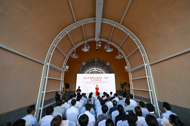 當(dāng)日,“北京中軸線申遺成功一周年主會(huì)場(chǎng)活動(dòng)”在北京鐘鼓樓廣場(chǎng)舉行。活動(dòng)發(fā)布了《北京中軸線保護(hù)傳承三年行動(dòng)計(jì)劃(2025年—2027年)》、《北京中軸線:中國(guó)理想都城秩序的杰作》叢書(shū)以及《世界文化遺產(chǎn)——北京中軸線》特種郵票等,展現(xiàn)申遺成功一年來(lái),北京中軸線整體性和系統(tǒng)性保護(hù)、文化遺產(chǎn)傳承利用、國(guó)際交流合作等方面的一系列成果。