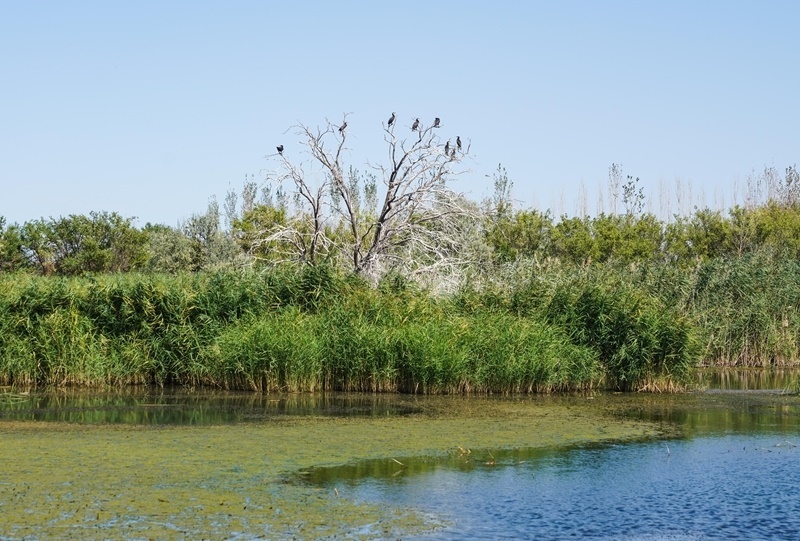 8月10日,鸕鶿在瑪納斯國(guó)家濕地公園樹枝上棲息。