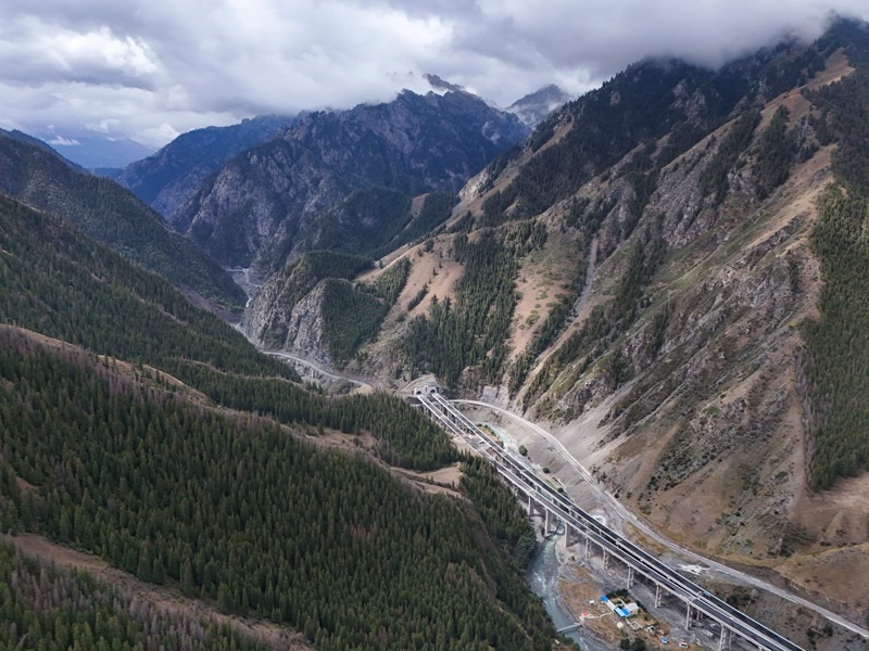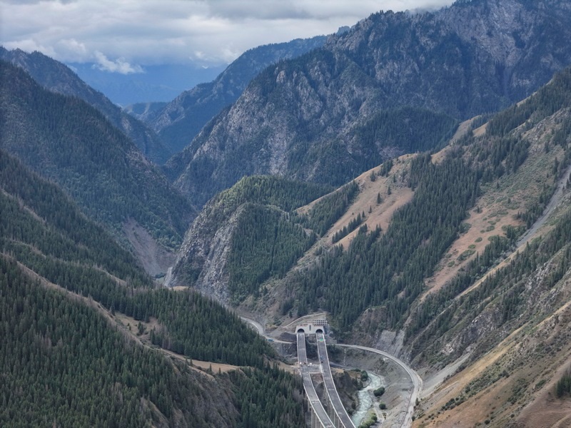 8月19日拍攝的新疆烏尉高速公路前峽1號(hào)隧道北端及其附近路段(無(wú)人機(jī)照片)。