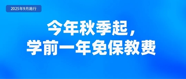 國(guó)務(wù)院辦公廳印發(fā)《關(guān)于逐步推行免費(fèi)學(xué)前教育的意見(jiàn)》。從2025年秋季學(xué)期起,免除公辦幼兒園學(xué)前一年在園兒童保育教育費(fèi)。對(duì)在教育部門(mén)批準(zhǔn)設(shè)立的民辦幼兒園就讀的適齡兒童,參照當(dāng)?shù)赝?lèi)型公辦幼兒園免除水平,相應(yīng)減免保育教育費(fèi)。財(cái)政部、教育部將統(tǒng)籌考慮學(xué)齡人口變化、財(cái)力狀況等因素,研究適時(shí)完善免費(fèi)學(xué)前教育政策。西藏,四川、云南、甘肅、青海四省涉藏州縣,新疆喀什、和田、阿克蘇、克孜勒蘇柯?tīng)柨俗嗡牡刂莸鹊貐^(qū)在園兒童繼續(xù)執(zhí)行現(xiàn)行政策。