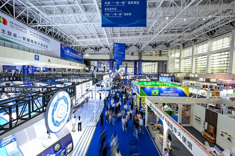 這是8月28日在寧夏銀川市拍攝的第七屆中國(guó)—阿拉伯國(guó)家博覽會(huì)現(xiàn)場(chǎng)。