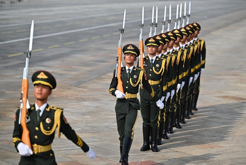 9月3日,紀(jì)念中國人民抗日戰(zhàn)爭暨世界反法西斯戰(zhàn)爭勝利80周年大會在北京隆重舉行。這是標(biāo)兵就位。