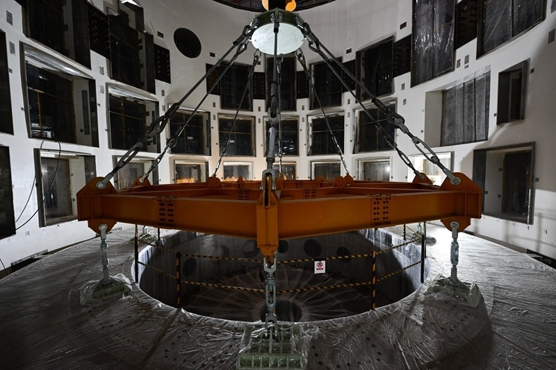 這是10月1日在緊湊型聚變能實驗裝置(BEST)建設現(xiàn)場拍攝的成功落位安裝的杜瓦底座。