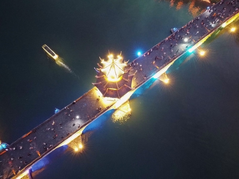 10月3日,游客在貴州省黔東南苗族侗族自治州鎮(zhèn)遠(yuǎn)縣古城游玩(無人機照片)。