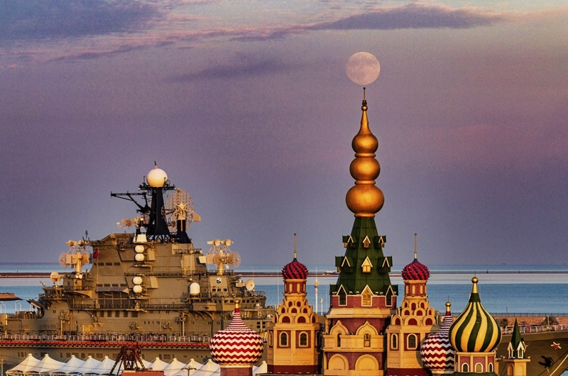 10月6日在天津市濱海新區(qū)泰達(dá)航母主題公園拍攝的中秋滿月(無人機(jī)照片)。