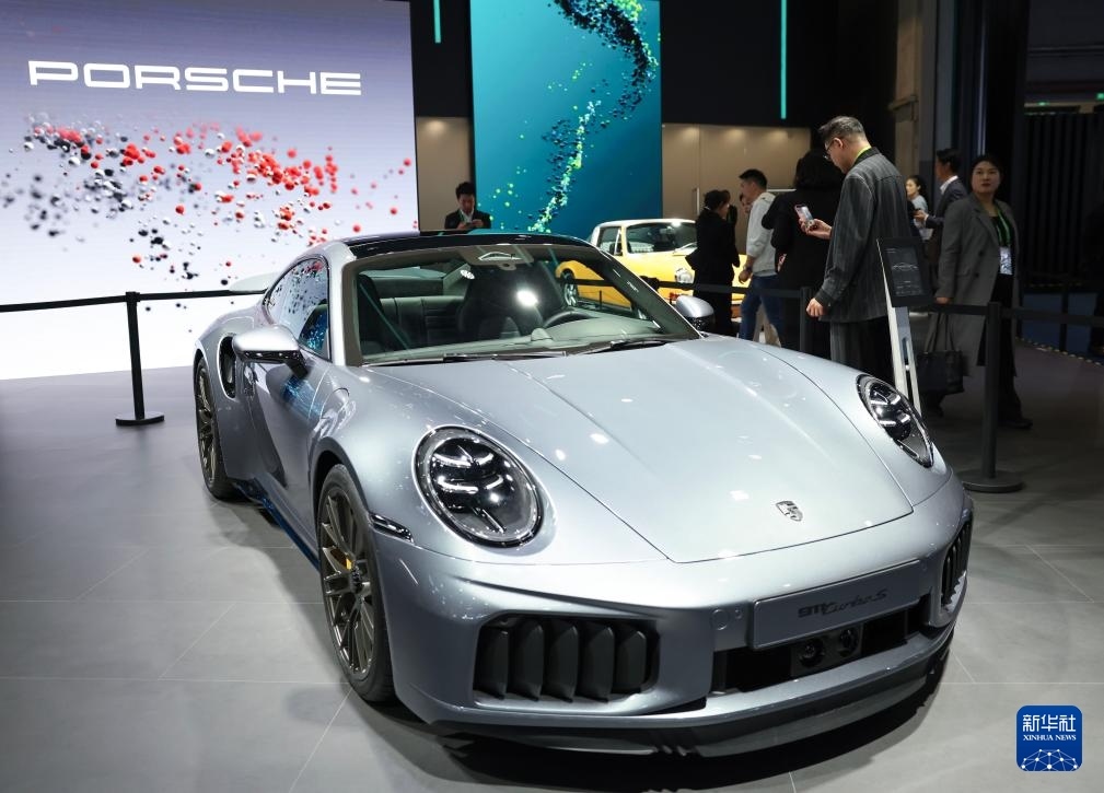 11月6日在進(jìn)博會(huì)汽車及智慧出行展區(qū)大眾汽車展臺(tái)拍攝的新款保時(shí)捷911Turbo S。這是該產(chǎn)品在亞洲首發(fā)。