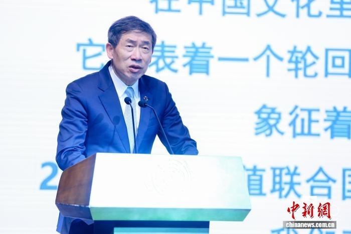 11月13日,聯(lián)合國(guó)開(kāi)發(fā)計(jì)劃署(UNDP)在北京舉辦成立60周年招待會(huì)。圖為聯(lián)合國(guó)副秘書長(zhǎng)、聯(lián)合國(guó)開(kāi)發(fā)計(jì)劃署代理署長(zhǎng)徐浩良致辭,呼吁各方秉持團(tuán)結(jié)精神,拿出更大決心,應(yīng)對(duì)全球發(fā)展挑戰(zhàn)。(UNDP供圖)