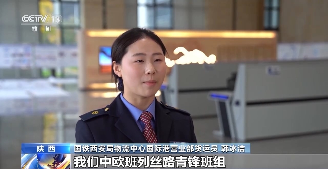 國(guó)鐵西安局物流中心國(guó)際港營(yíng)業(yè)部貨運(yùn)員 韓冰潔:下一個(gè)五年,我們中歐班列絲路青鋒班組要把更多中國(guó)制造更好更快發(fā)到全球。