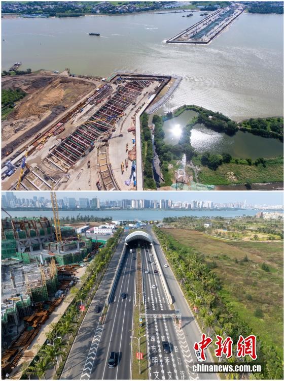 2025年12月18日,海南自由貿(mào)易港正式啟動(dòng)全島封關(guān)。近年來(lái),海南自貿(mào)港建設(shè)在利好政策帶動(dòng)下不斷刷新“自貿(mào)港速度”,一個(gè)個(gè)重大項(xiàng)目、重點(diǎn)園區(qū)拔地而起,直觀呈現(xiàn)海南自貿(mào)港的蓬勃生機(jī)。這里正成為中國(guó)對(duì)外開放的新前沿、互利合作的新熱土和推動(dòng)經(jīng)濟(jì)全球化的新引擎。上資料圖為2019年6月19日的??谖拿鳀|越江隧道施工現(xiàn)場(chǎng),下資料圖為2025年12月7日已建成通車的海南省首條跨越南渡江隧道——文明東隧道。(拼版圖,無(wú)人機(jī)照片)