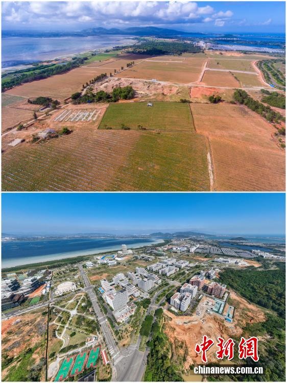 2025年12月18日,海南自由貿(mào)易港正式啟動(dòng)全島封關(guān)。近年來(lái),海南自貿(mào)港建設(shè)在利好政策帶動(dòng)下不斷刷新“自貿(mào)港速度”,一個(gè)個(gè)重大項(xiàng)目、重點(diǎn)園區(qū)拔地而起,直觀呈現(xiàn)海南自貿(mào)港的蓬勃生機(jī)。這里正成為中國(guó)對(duì)外開放的新前沿、互利合作的新熱土和推動(dòng)經(jīng)濟(jì)全球化的新引擎。上資料圖為2020年6月18日俯瞰尚未開發(fā)的海南陵水黎安國(guó)際教育創(chuàng)新試驗(yàn)區(qū)所在地,下資料圖為2025年11月22日已初具規(guī)模的海南陵水黎安國(guó)際教育創(chuàng)新試驗(yàn)區(qū)。(拼版圖,無(wú)人機(jī)照片)