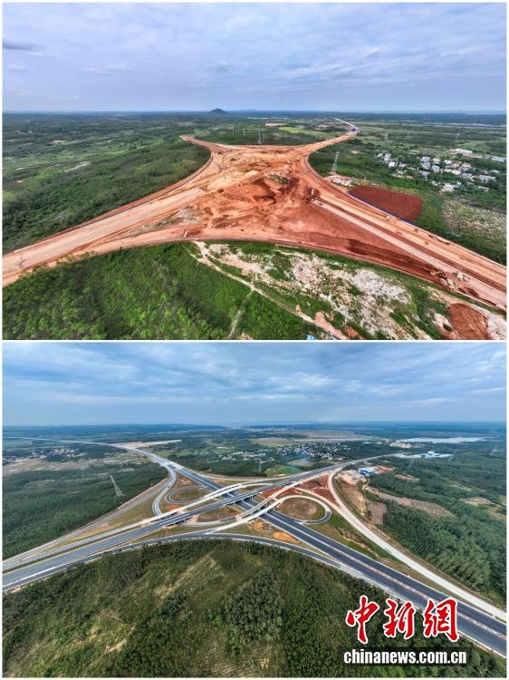 2025年12月18日,海南自由貿(mào)易港正式啟動(dòng)全島封關(guān)。近年來(lái),海南自貿(mào)港建設(shè)在利好政策帶動(dòng)下不斷刷新“自貿(mào)港速度”,一個(gè)個(gè)重大項(xiàng)目、重點(diǎn)園區(qū)拔地而起,直觀呈現(xiàn)海南自貿(mào)港的蓬勃生機(jī)。這里正成為中國(guó)對(duì)外開放的新前沿、互利合作的新熱土和推動(dòng)經(jīng)濟(jì)全球化的新引擎。上資料圖為2021年2月6日正在建設(shè)中的G15沈海高速公路??诙雾?xiàng)目海秀互通,下資料圖為2022年12月28日G15沈海高速公路海口段建成通車。(拼版圖,無(wú)人機(jī)照片)