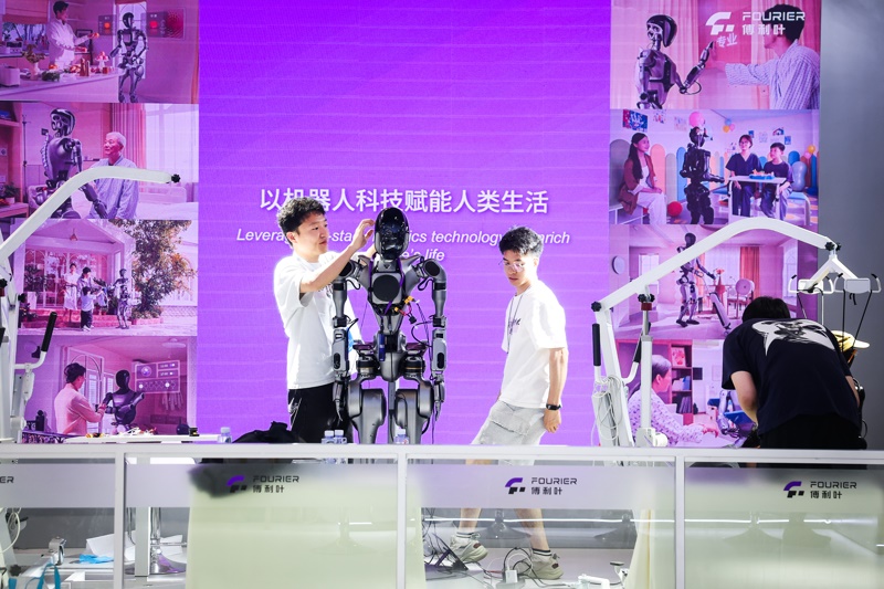 2025世界人工智能大會上,傅利葉工程師調(diào)試人形機(jī)器人。解放日報(bào)記者 海沙爾 攝