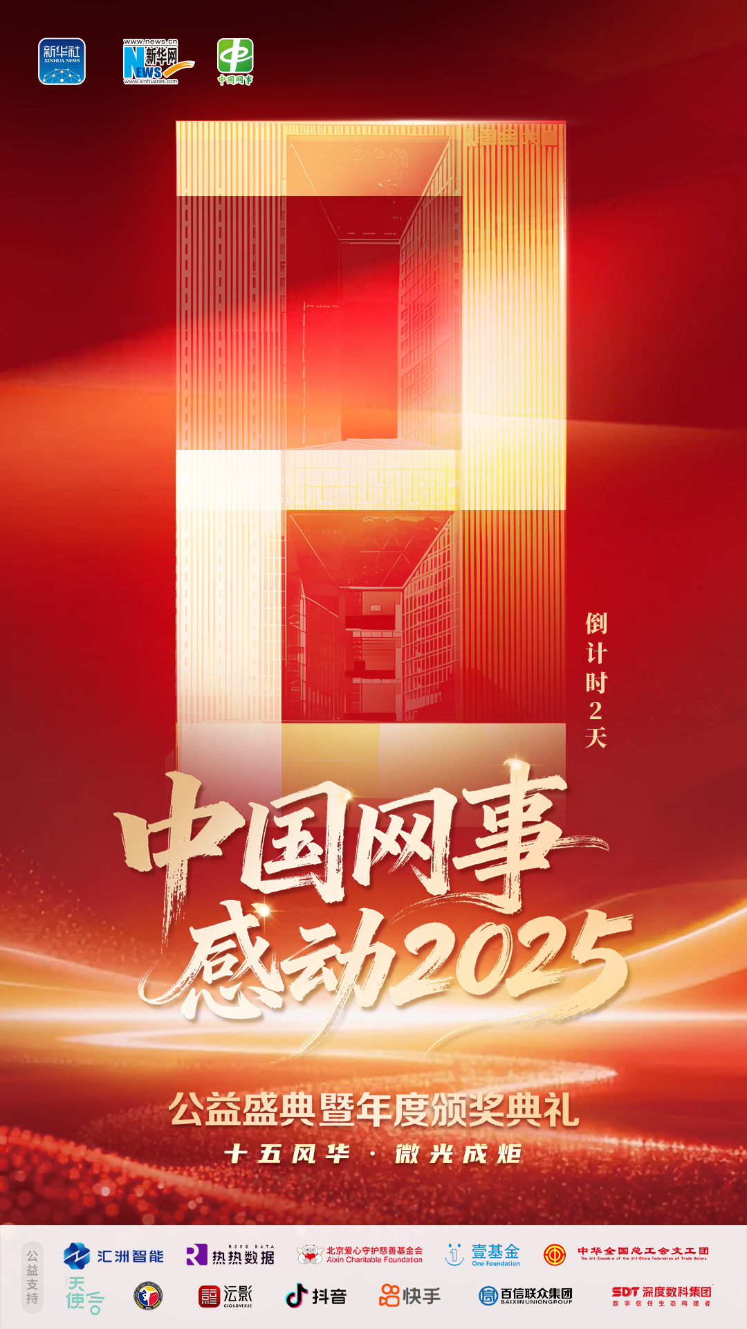 新華網(wǎng)北京1月26日電(記者高海英)十五風(fēng)華,微光成炬?!爸袊?guó)網(wǎng)事·感動(dòng)2025”公益盛典暨年度頒獎(jiǎng)典禮將于2026年1月28日在北京國(guó)家金融信息大廈溫情啟幕,屆時(shí)將揭曉“中國(guó)網(wǎng)事·感動(dòng)2025”十大年度網(wǎng)絡(luò)人物。