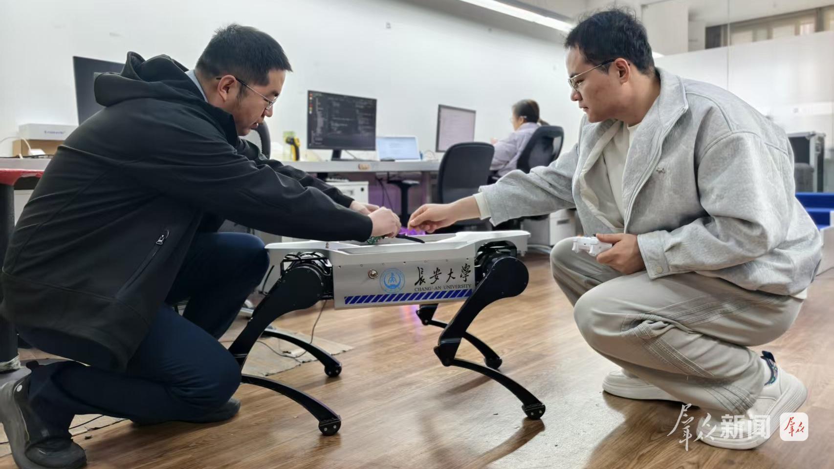 3月2日,西安云合智能機(jī)器人有限公司里,技術(shù)人員在優(yōu)化調(diào)試防爆四足巡檢機(jī)器人。這家由長(zhǎng)安大學(xué)科研團(tuán)隊(duì)創(chuàng)辦的企業(yè),正在準(zhǔn)備新款產(chǎn)品的發(fā)布。