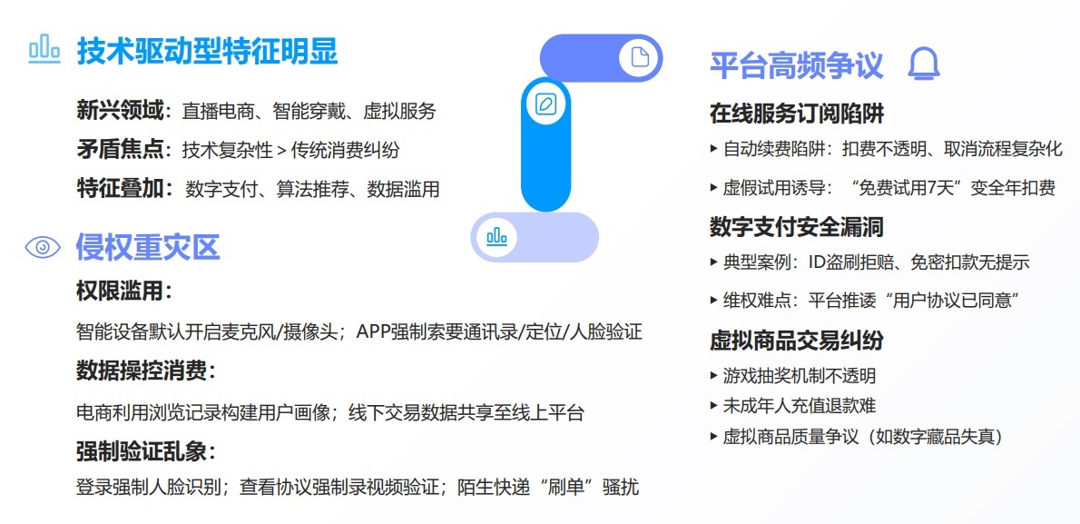 與此同時(shí),隨著直播電商、智能穿戴、虛擬服務(wù)等數(shù)字化消費(fèi)的爆發(fā)式增長,相關(guān)爭(zhēng)議也呈現(xiàn)上升趨勢(shì)。