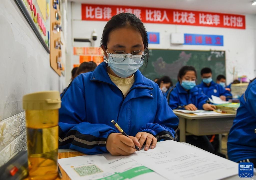 4月1日,呼和浩特市鐵路第二中學(xué)高三年級(jí)學(xué)生在教室里上課。