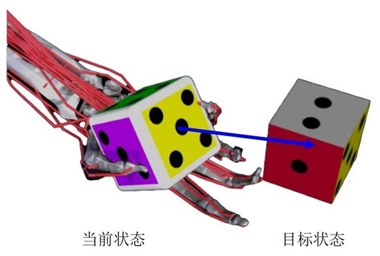 花了大約一周時間熟悉仿生靈巧手的關節(jié)與肌肉之間的關系后,他們開始制訂培訓這位人工智能“學生”的方案。抓取、轉動骰子,對仿生手來說相當復雜,他們就將動作拆解,如同體操教練教學員完成一套復雜的轉體、曲體組合動作時,先教各個分解動作,再進一步完成動作組合。如同水族館表演的海豚,通過獎勵塑造,人工智能在完成目標動作時,一個相當于小魚的獎勵函數(shù)會對它進行“激勵”,以促進其更好地“學習”。