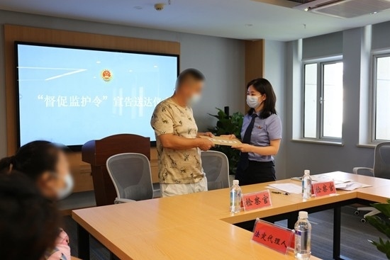 檢察官對失職家長送達督促監(jiān)護令。程珊/攝