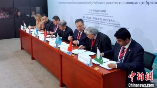 活動現(xiàn)場,西安交通大學、哈薩克斯坦國立大學、伊朗科技大學、塔什干信息技術大學、吉爾吉斯國際大學、巴基斯坦國立科技大學、塔吉克斯坦國立大學共同簽署“絲綢之路大學聯(lián)盟”內上海合作組織成員國《高等教育合作協(xié)議》。在該合作協(xié)議框架下,各方達成首個學分互認項目的共識,即共同建設絲綢之路大學聯(lián)盟“可持續(xù)發(fā)展目標實現(xiàn)路徑在線課程”。