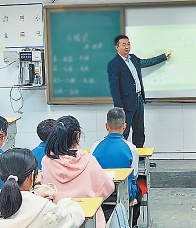 八仙中學(xué)校長李強在給學(xué)生上課。本報記者 張丹華攝