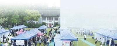 復(fù)旦大學(xué)開展生涯服務(wù)集市活動(dòng),促進(jìn)人才供需對(duì)接。岑丹峰攝