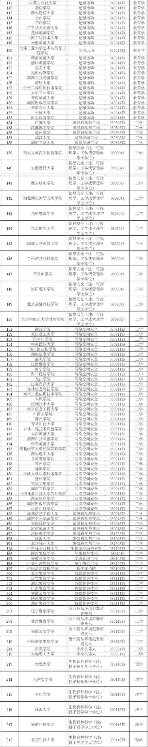 從申報的專業(yè)類型來看,2024年度共申報176種專業(yè)。其中,申報數(shù)量前五名的專業(yè)依次為:足球運動(39個)、網(wǎng)絡空間安全(37個)、運動訓練(34 個)、健康與醫(yī)療保障(17個)、老年醫(yī)學與健康(14個)。