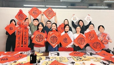 書畫社推動了中國文化在校園里的傳播。秦思涵說:“今年除夕夜,我們在學(xué)校擺攤賣春聯(lián)時發(fā)生了一件事情。一名女生問我,能否為她和她的室友們寫一副春聯(lián),里面包含她們的中文名字。有一名女孩不知道自己中文名字叫什么。她是一名扇舞舞者,我想了很久,為她起了名字‘葉舞翎’,并將其融入了春聯(lián)祝福。春聯(lián)寫好后,我們每個人都很開心。這樣的小事還有很多,越來越多人對我們的文化感興趣?!?/p>