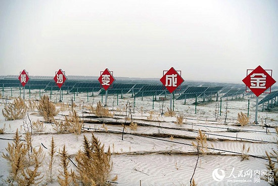 驅車駛入位于庫布其沙漠中段的達拉特光伏發(fā)電應用領跑基地,采訪車在其中行駛了近十分鐘,光伏板仿佛成片“會發(fā)電的向日葵”正在隨著光線的變化,每隔15分鐘調整角度。記者了解到,光伏板上面可以發(fā)電,下面也可以利用太陽光反射進行發(fā)電,還可以在地上種植紅棗、枸杞、文冠果等等。在庫布其沙漠發(fā)展種養(yǎng)殖業(yè),水源是個大問題。據達拉特旗發(fā)改委副主任王保和介紹,當地計劃將附近的煤礦企業(yè)生產產生的中水,通過凈化,引入到這里發(fā)展生態(tài)產業(yè),不僅可以增加當地居民的收入,對治沙、固沙也可以起到很好的效果。“未來,光伏基地將把一二三產業(yè)結合發(fā)展,與東邊的響沙灣和西邊的恩格貝景區(qū)共筑起達拉特旗的沙漠旅游風景線。”王保和說。